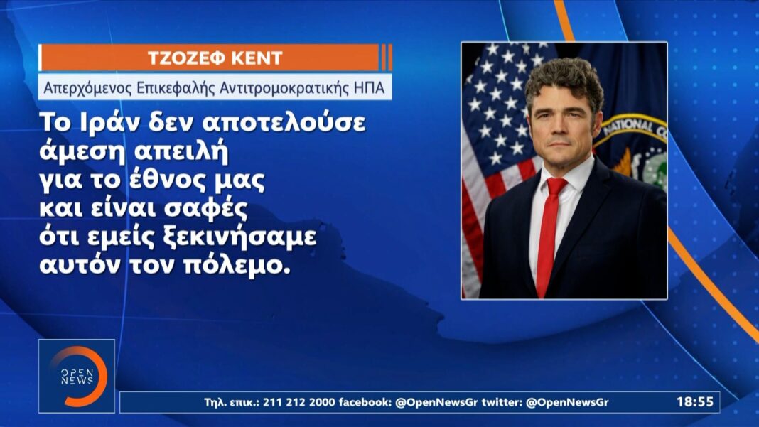 Ο επικεφαλής της αντι-τρομοκρατικής υπηρεσίας ανακοίνωσε την παραίτησή του, υποστηρίζοντας ότι το Ιράν δεν αποτελεί άμεση απειλή για τις Ηνωμένες Πολιτείες. Επιπλέον, ανέφερε ότι η χώρα παρασύρθηκε σε έναν πόλεμο εξαιτίας των σχέσεων με το Ισραήλ, γεγονός που προκαλεί αναταραχή στη διοίκηση Τραμπ.