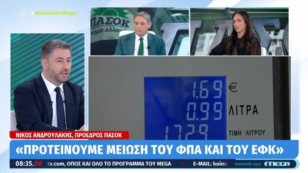 Ν. Ανδρουλάκης: «Προτείνουμε μείωση του ΦΠΑ και του ΕΦΚ»