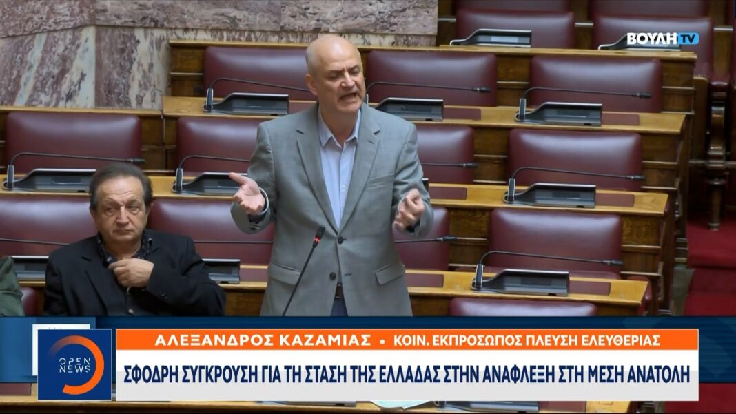 Σε έντονο κλίμα διαξιφισμών, η Βουλή έγινε πεδίο αντιπαράθεσης μεταξύ του υφυπουργού Εξωτερικών και του βουλευτή της Πλεύσης Ελευθερίας. Οι δύο πολιτικοί αντάλλαξαν σφοδρές απόψεις σχετικά με τη στάση της Ελλάδας απέναντι στις πρόσφατες εξελίξεις στη Μέση Ανατολή, αναδεικνύοντας τις διαφωνίες τους για την εξωτερική πολιτική της χώρας.