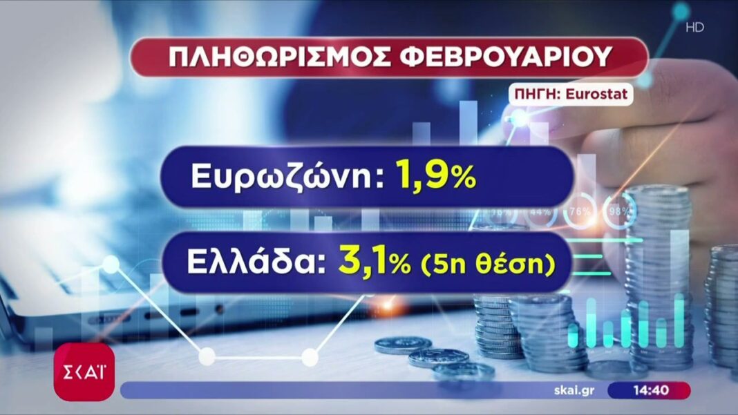 Eurostat: Στο 3,1% ο πληθωρισμός στην Ελλάδα τον Φεβρουάριο