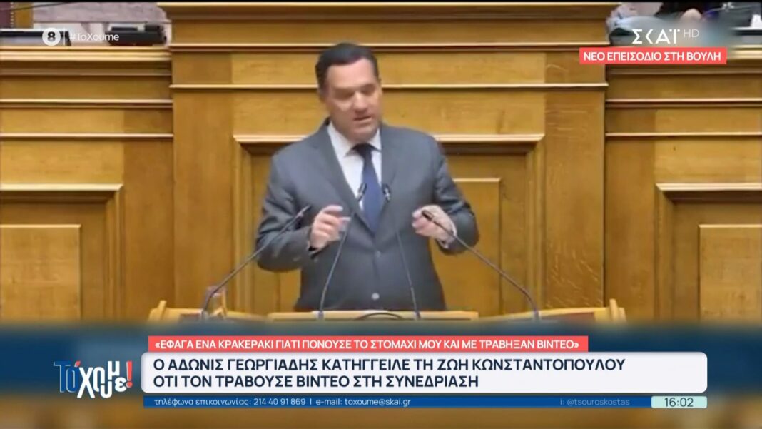 Ένα νέο επεισόδιο έντασης σημειώθηκε στη Βουλή, όταν ο Άδωνις Γεωργιάδης κατήγγειλε τη Ζωή Κωνσταντοπούλου για βιντεοσκόπηση ενώ εκείνος έτρωγε. Η κόντρα μεταξύ των δύο πολιτικών φαίνεται να κλιμακώνεται, με τον Γεωργιάδη να εκφράζει την αγανάκτησή του για τη συμπεριφορά της συναδέλφου του.