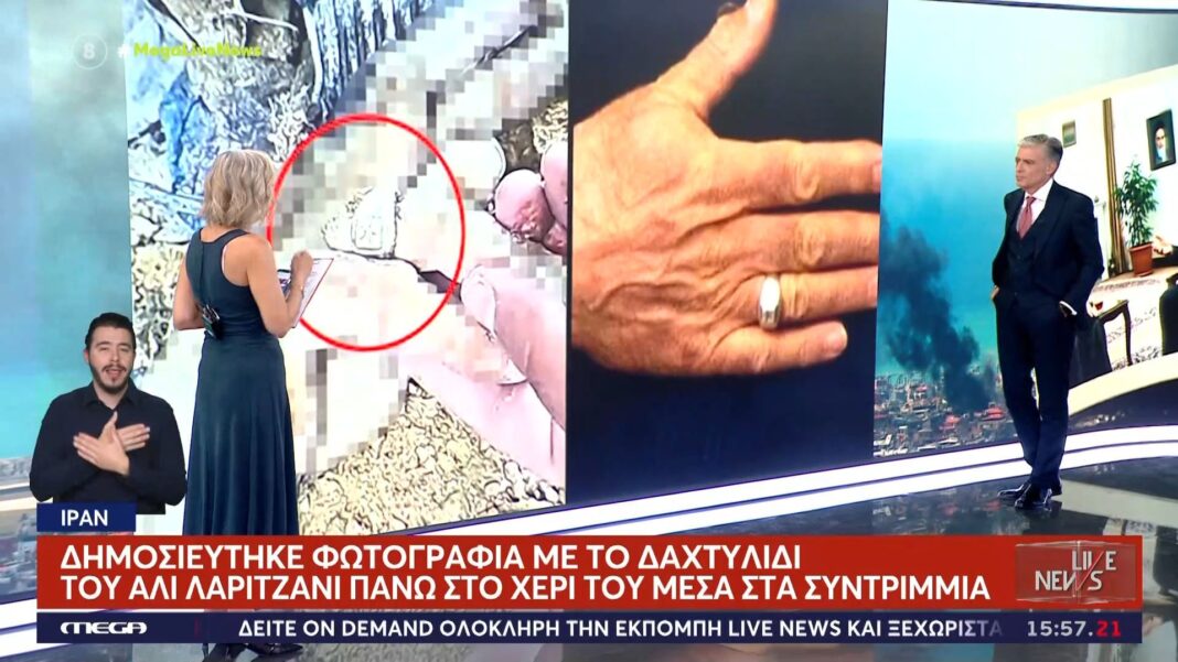 Δημοσιεύτηκε μια φωτογραφία που αποτυπώνει το δαχτυλίδι του Αλί Λαριτζανί, το οποίο βρέθηκε πάνω στο χέρι του μέσα στα συντρίμμια. Αυτή η εικόνα θεωρείται ως σημαντικό πειστήριο που επιβεβαιώνει τον θάνατό του, προκαλώντας σοκ στην κοινή γνώμη και στους πολιτικούς κύκλους.