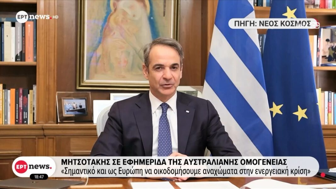 Ο Πρωθυπουργός Κυριάκος Μητσοτάκης αναφέρθηκε στην ανάγκη για στρατηγικές ενέργειας στην Ευρώπη, μιλώντας σε εφημερίδα της αυστραλιανής ομογένειας. Τόνισε τη σημασία της συνεργασίας μεταξύ των κρατών-μελών για την οικοδόμηση «αναχωμάτων» που θα προστατεύσουν τους πολίτες από την ενεργειακή κρίση.
