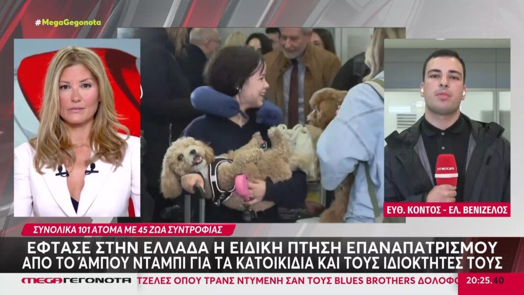 Στην Ελλάδα έφτασε ειδική πτήση επαναπατρισμού, φέρνοντας 101 άτομα και 45 κατοικίδια ζώα. Η πτήση περιλάμβανε οικογένειες που είχαν αναγκαστεί να εγκαταλείψουν τα σπίτια τους, προσφέροντας τους τη δυνατότητα να επανενωθούν με τους αγαπημένους τους φίλους.