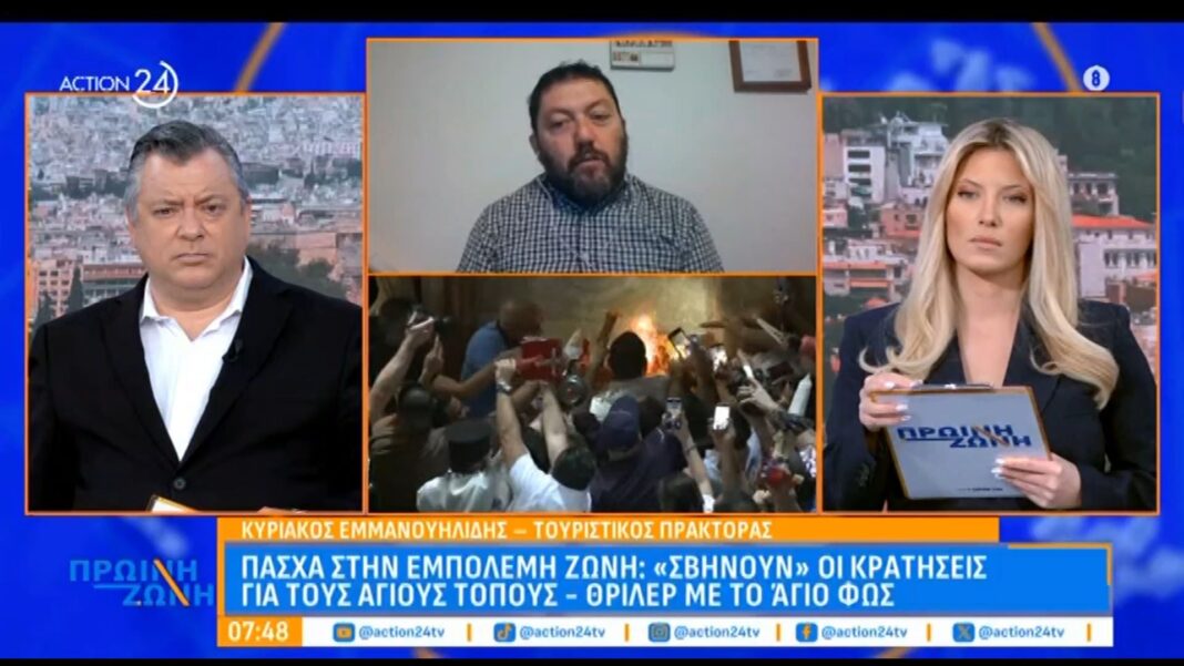 Ο τουριστικός πράκτορας Κυριάκος Εμμανουηλίδης αναλύει την κατάσταση στην «Πρωινή Ζώνη», επισημαίνοντας τις προκλήσεις που αντιμετωπίζουν οι ταξιδιώτες. Παράλληλα, η διαδικασία μεταφοράς του Αγίου Φωτός παραμένει αβέβαιη, προσθέτοντας ακόμη περισσότερη ανησυχία στους πιστούς που ελπίζουν να συμμετάσχουν στις παραδοσιακές τελετές.