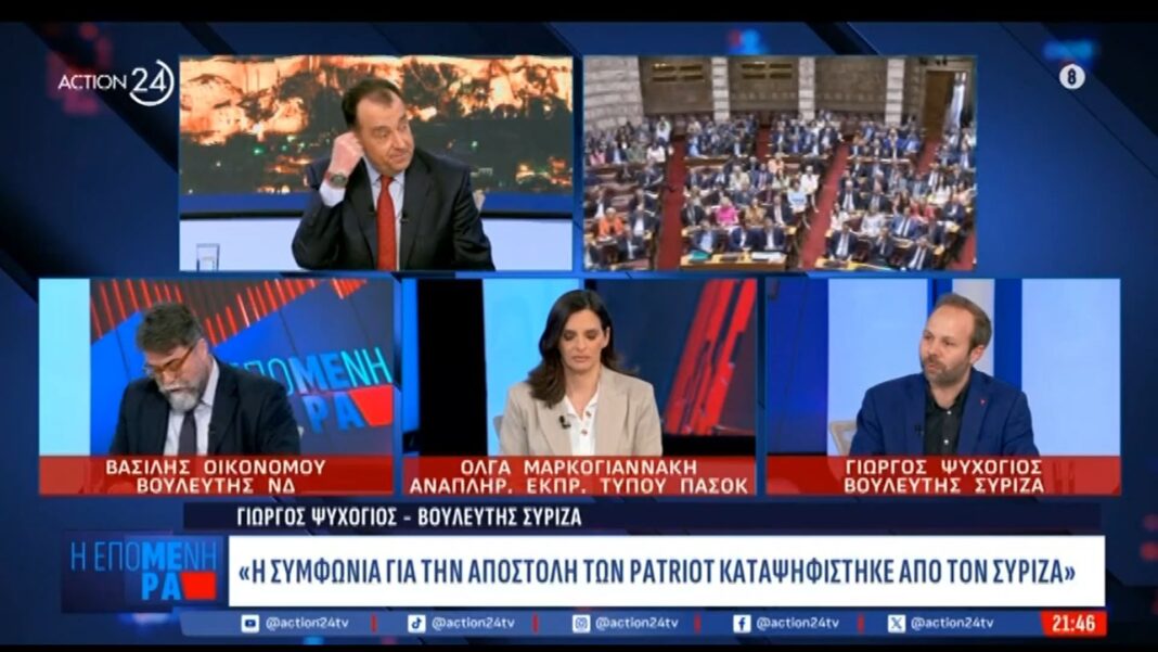Μια έντονη πολιτική αντιπαράθεση εκτυλίχθηκε μεταξύ των εκπροσώπων της Νέας Δημοκρατίας, του ΠΑΣΟΚ και του ΣΥΡΙΖΑ. Οι Βασίλης Οικονόμου, Όλγα Μαρκογιαννάκη και Γιώργος Ψυχογιός παρουσίασαν τις θέσεις τους για κρίσιμα ζητήματα που απασχολούν την ελληνική κοινωνία, όπως η οικονομία και η κοινωνική πολιτική.