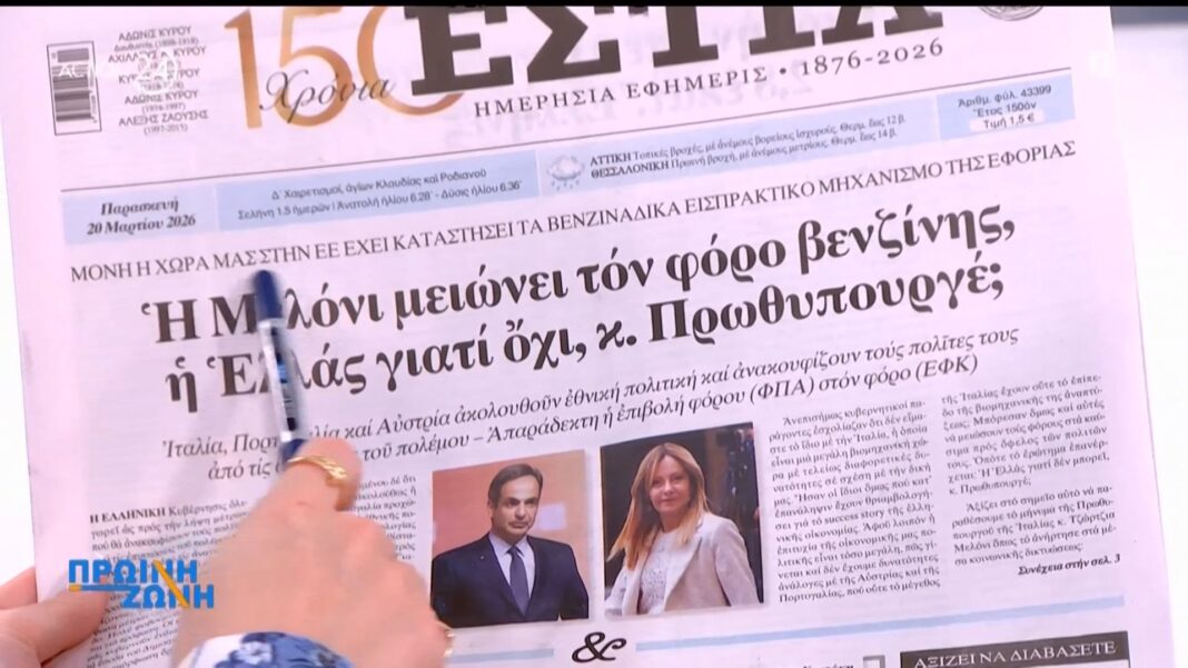 Εφημερίδες 20/03/26: Τα πρωτοσέλιδα