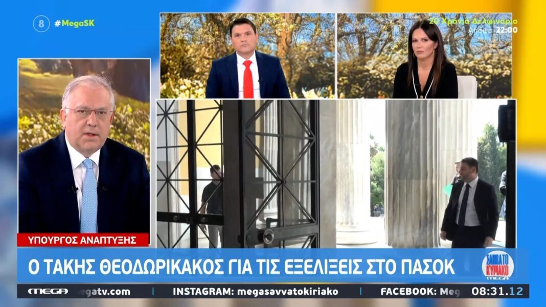 Ο Υπουργός Ανάπτυξης Τάκης Θεοδωρικάκος δήλωσε ότι πιστεύει πως η Νέα Δημοκρατία θα καταφέρει να διατηρήσει την αυτοδυναμία της στις επόμενες εκλογές. Στη διάρκεια της συνέντευξής του, αναφέρθηκε επίσης στις πρόσφατες εξελίξεις σχετικά με το ΠΑΣΟΚ και τη δυνατότητα συνεργασίας μεταξύ των κομμάτων.