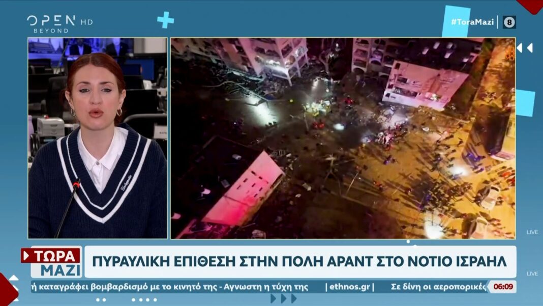 Η πόλη Αράντ στο νότιο Ισραήλ έχει κηρυχθεί σε κατάσταση έκτακτης ανάγκης μετά από μια ιρανική πυραυλική επίθεση. Σύμφωνα με ισραηλινά μέσα, τουλάχιστον 70 άνθρωποι έχουν τραυματιστεί, με τις αρχές να καταβάλλουν μεγάλες προσπάθειες για την παροχή βοήθειας στους πληγέντες.