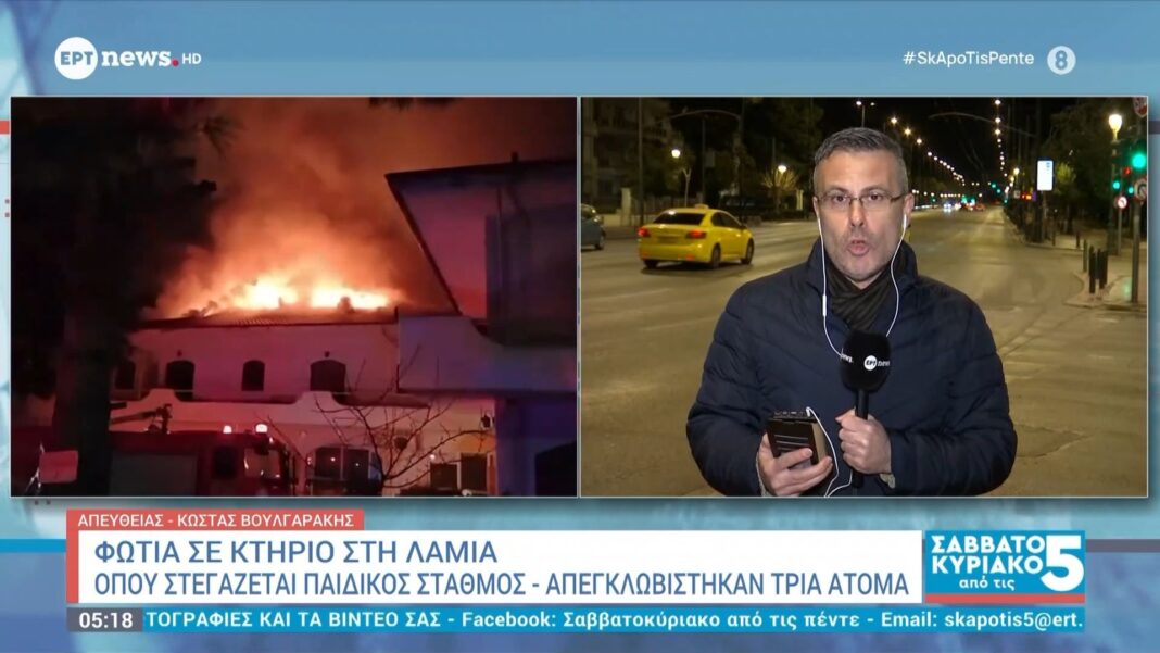 Πυροσβεστική ελέγχει την κατάσταση και απεγκλωβίζει ασφαλώς τρία άτομα στη Λαμία. Αστυνομική έρευνα για τα ακριβή αίτια της πυρκαγιάς έχει ξεκινήσει.