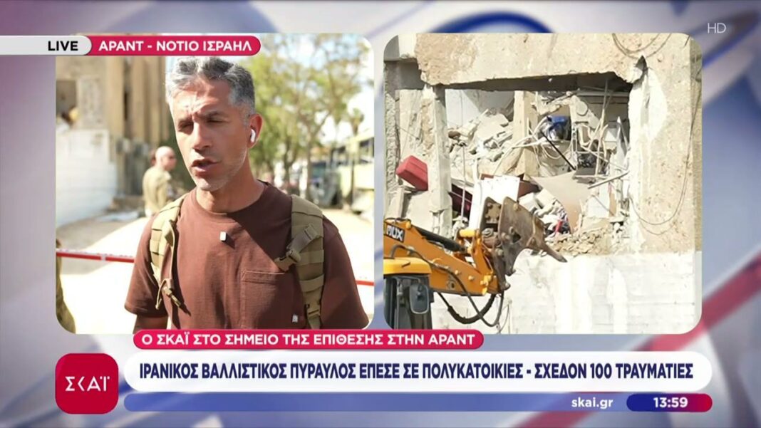 Ένας βαλλιστικός πύραυλος που εκτοξεύθηκε από το Ιράν έπληξε πολυκατοικίες σε αστική περιοχή, προκαλώντας σοβαρές ζημιές. Οι τοπικές αρχές αναφέρουν σχεδόν 100 τραυματίες, με αρκετούς να βρίσκονται σε κρίσιμη κατάσταση.