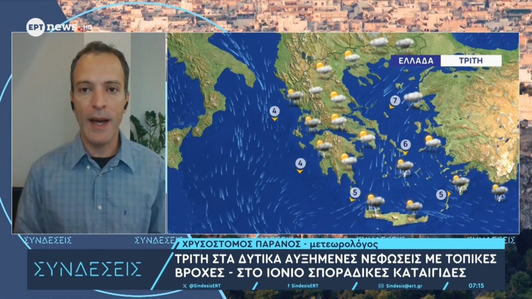 Στα δυτικά της χώρας, η πρόγνωση δείχνει σχεδόν αίθριο καιρό με λίγες πρόσκαιρες νεφώσεις. Οι θερμοκρασίες θα κυμανθούν σε φυσιολογικά επίπεδα για την εποχή, προσφέροντας ιδανικές συνθήκες για υπαίθριες δραστηριότητες.