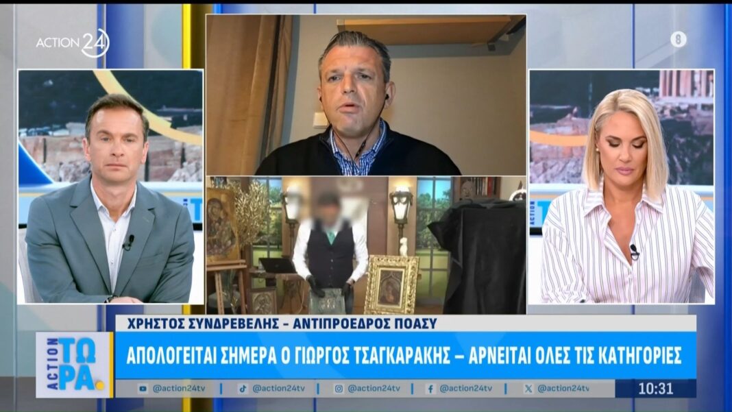 Ο Γιώργος Τσαγκαράκης απολογείται σήμερα ενώπιον των αρχών, αρνούμενος κατηγορίες που τον βαραίνουν. Η διαδικασία διεξάγεται σε κλίμα έντασης, με τους υποστηρικτές του να εκφράζουν την εμπιστοσύνη τους στην αθωότητά του.