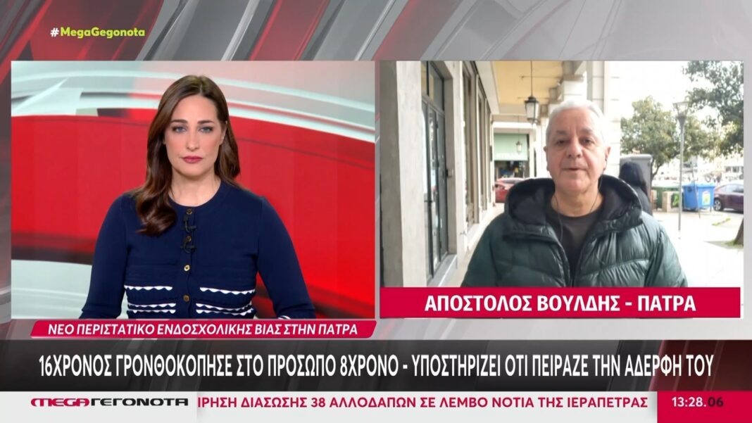 Σημαντικό περιστατικό βίας σημειώθηκε σε σχολείο των Βραχνεΐκων στην Πάτρα, όπου ένας 16χρονος μαθητής γρονθοκόπησε στο πρόσωπο έναν 8χρονο. Ο δράστης ισχυρίστηκε ότι η επιθετική του συμπεριφορά προήλθε από την αντίληψη ότι το θύμα πείραζε την αδερφή του.