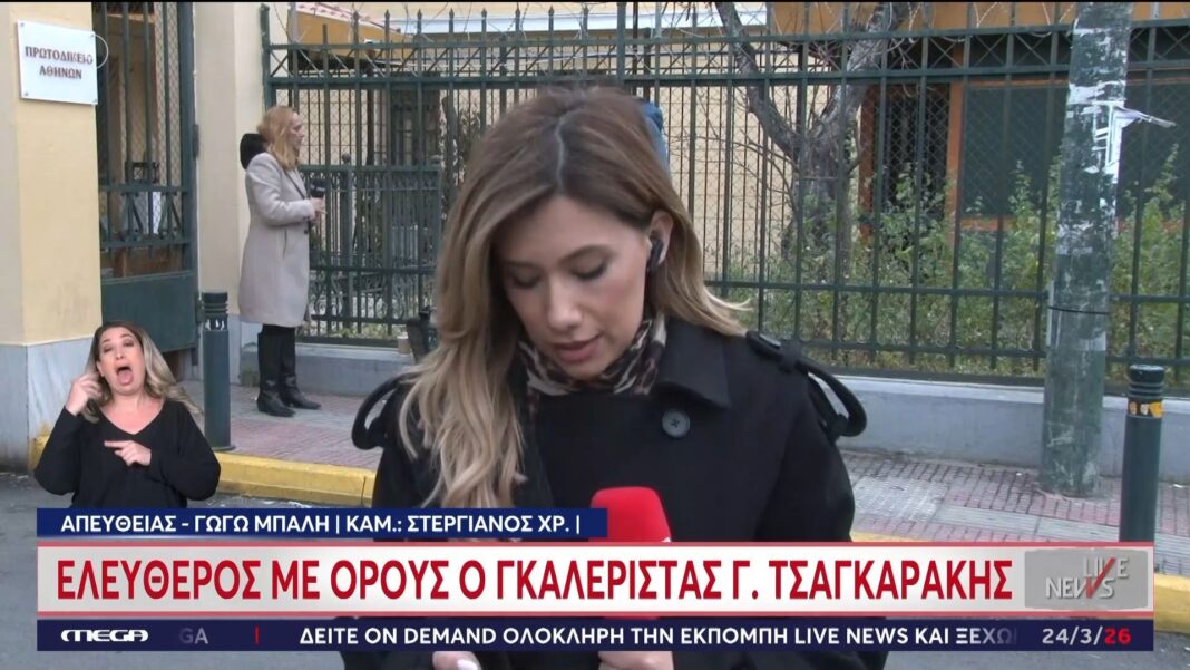Ελεύθερος με όρους αφέθηκε ο γκαλερίστας Γ. Τσαγκαράκης, έπειτα από την ολοκλήρωση της διαδικασίας της προφυλάκισης του. Οι όροι που του επιβλήθηκαν περιλαμβάνουν την απαγόρευση εξόδου από τη χώρα και την υποχρέωση τακτικής παρουσίας στις αρχές.