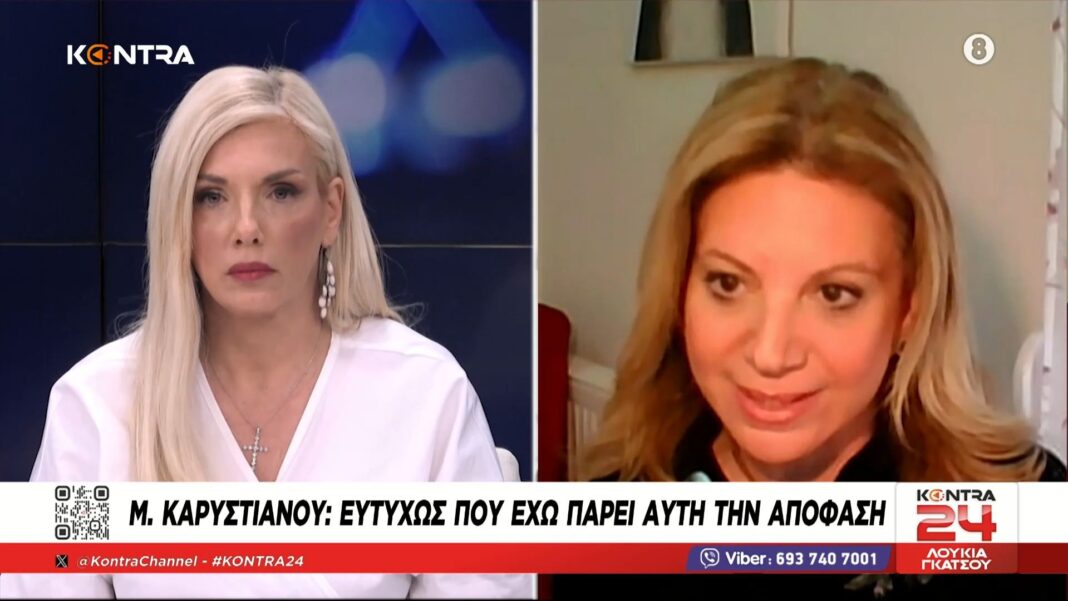 Η Μαρία Καρυστιανού ανακοίνωσε την ίδρυση πολιτικού φορέα, δηλώνοντας ότι η απόφασή της να εισέλθει στην πολιτική επιβεβαιώνεται καθημερινά. Υπογράμμισε την αδυναμία εύρεσης δικαιοσύνης εκτός του πολιτικού στίβου, ειδικά υπό τις σημερινές συνθήκες.