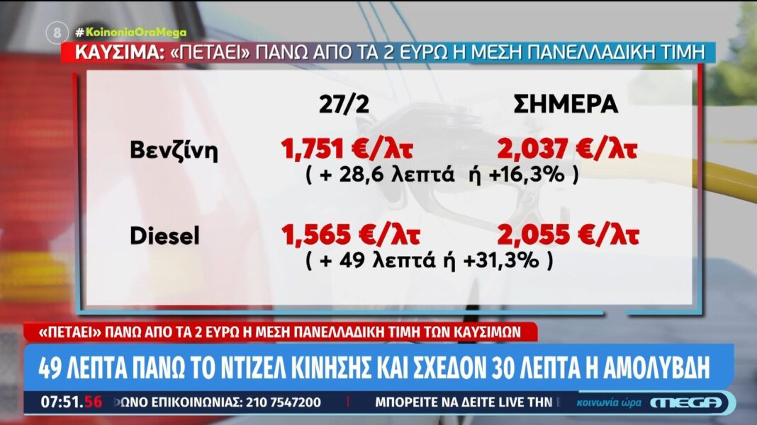 Οι τιμές των καυσίμων έχουν εκτοξευθεί, φτάνοντας πλέον σε ανησυχητικά επίπεδα. Η μέση πανελλαδική τιμή του καυσίμου ξεπερνά τα 2 ευρώ το λίτρο, προκαλώντας έντονη ανησυχία στους καταναλωτές και τις επιχειρήσεις.