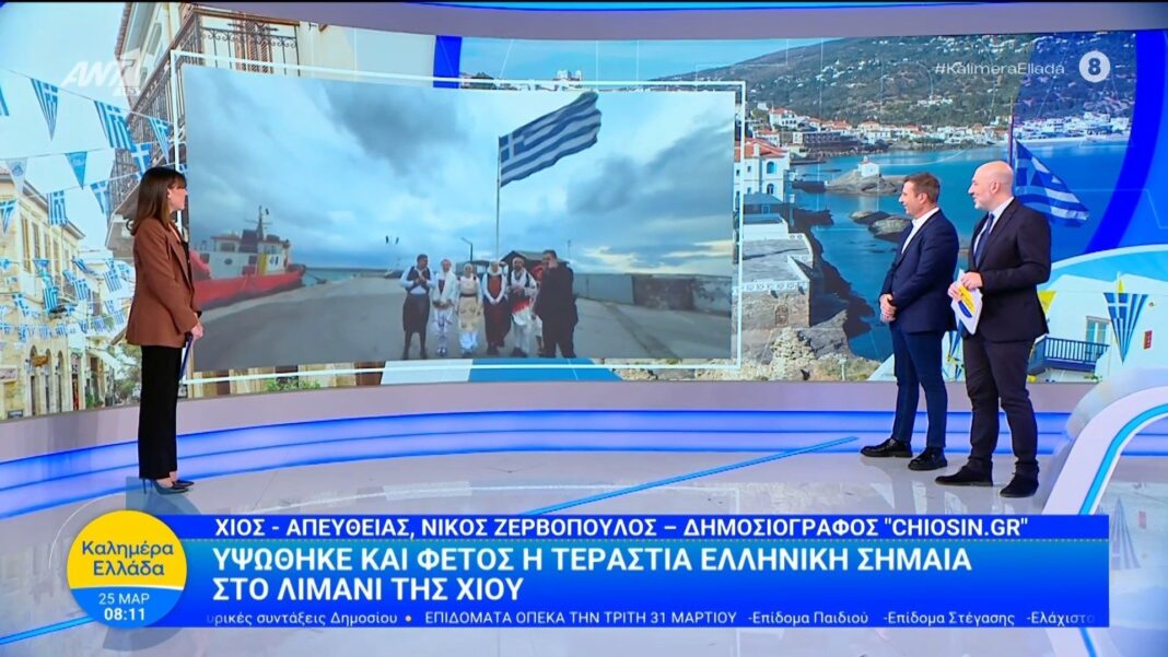 Στο λιμάνι της Χίου, η παραδοσιακή τελετή ανύψωσης της ελληνικής σημαίας πραγματοποιήθηκε και φέτος με ιδιαίτερη λαμπρότητα. Πλήθος κόσμου συγκεντρώθηκε για να παρακολουθήσει τη σημαία, που κοσμεί το τοπίο και συμβολίζει την εθνική ενότητα και υπερηφάνεια.