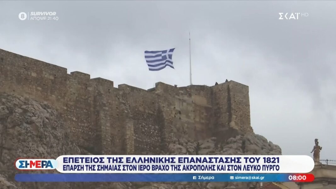 Η έπαρση της σημαίας στον βράχο της Ακρόπολης