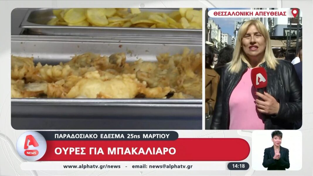 Ο παραδοσιακός μπακαλιάρος, ιδιαίτερα δημοφιλής κατά την εορτή της 25ης Μαρτίου, έχει προκαλέσει μεγάλες ουρές σε αρκετές κεντρικές αγορές της Θεσσαλονίκης. Οι κάτοικοι και οι επισκέπτες της πόλης έχουν σπεύσει να προμηθευτούν το αγαπημένο αυτό έδεσμα, που συνδυάζεται συχνά με σκορδαλιά.