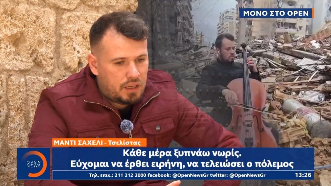 Ο Λιβανέζος τσελίστας Αχμέντ μεταφέρει μήνυμα ειρήνης παίζοντας μουσική στα ερείπια, προσφέροντας στήριξη στον λαό του και μιλώντας αποκλειστικά στο OPEN.