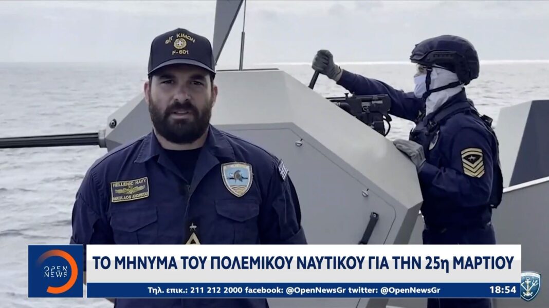 Το Πολεμικό Ναυτικό εξέφρασε τη δέσμευσή του προς την πατρίδα με μηνύματα από αξιωματικούς και στελέχη που υπηρετούν σε ελληνικές φρεγάτες στη Μέση Ανατολή, την Κύπρο και τη Μεσόγειο. Οι στρατιωτικοί αναφέρθηκαν στην αποστολή τους ως φρουροί της ειρήνης και της εθνικής κυριαρχίας, υπογραμμίζοντας την υποστήριξή τους για τις αξίες της Ελλάδας.