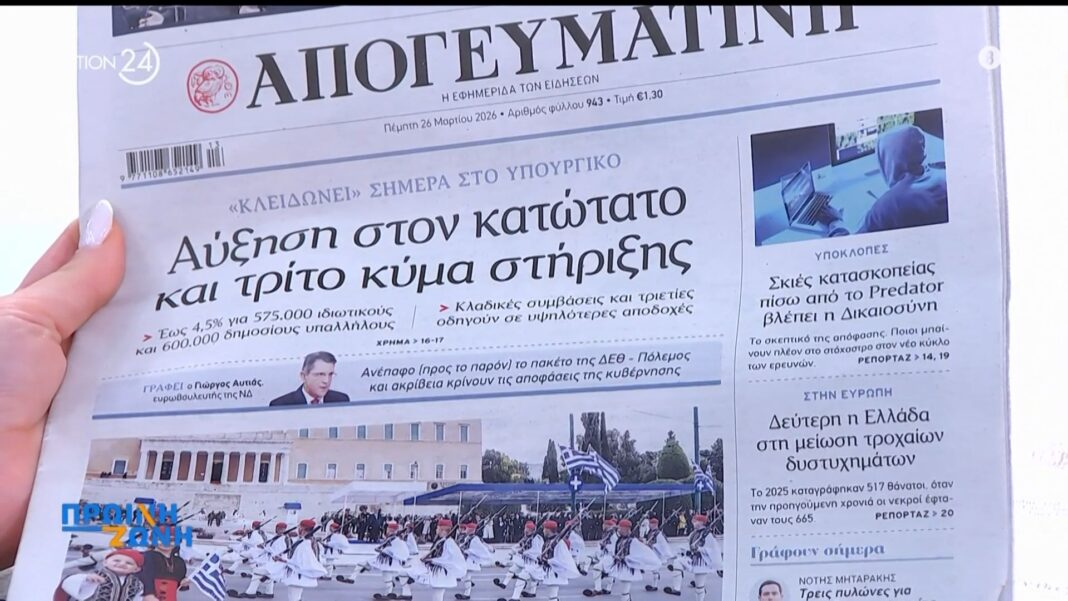 Πρωτοσέλιδα εφημερίδων: Τι γράφουν σήμερα Πέμπτη 26 Μαρτίου 2026
