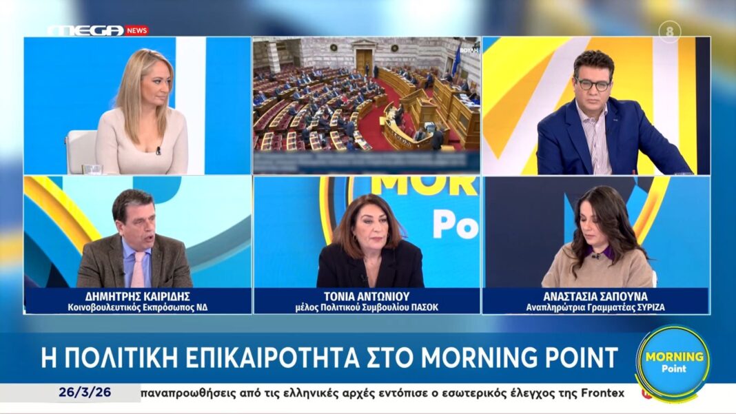 Στο πλαίσιο της συζήτησης γύρω από το σκάνδαλο των υποκλοπών, οι Δημήτρης Καιρίδης, Τόνια Αντωνίου και Αναστασία Σαπουνά αναλύουν τις συνέπειες της κατάστασης για την εμπιστοσύνη των πολιτών στους θεσμούς. Η Τόνια Αντωνίου τονίζει ότι η αδυναμία λειτουργίας των θεσμών οδηγεί σε ανασφάλεια και αβεβαιότητα.