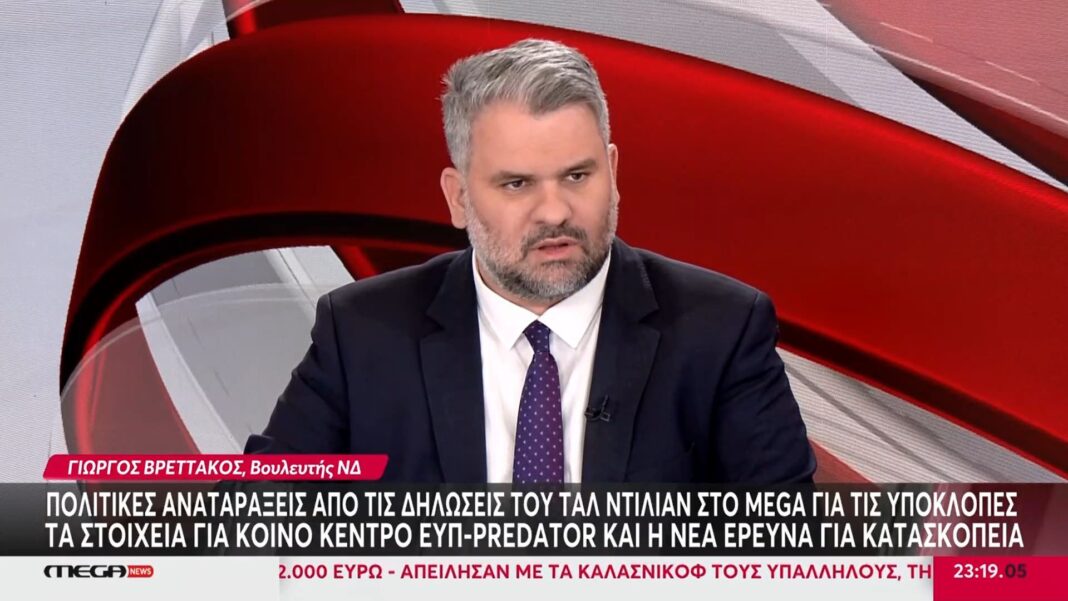 Κατά τη διάρκεια της εμφάνισής του στην εκπομπή «Mega News Επικαιρότητα», ο Βρεττάκος εξέφρασε την ανησυχία του για τις επιπτώσεις των υποκλοπών στη δημοκρατία. Ζήτησε από τους αρμόδιους φορείς να αναλάβουν άμεσα δράση, διαβεβαιώνοντας ότι η διαλεύκανση της υπόθεσης είναι επιτακτική προτεραιότητα.