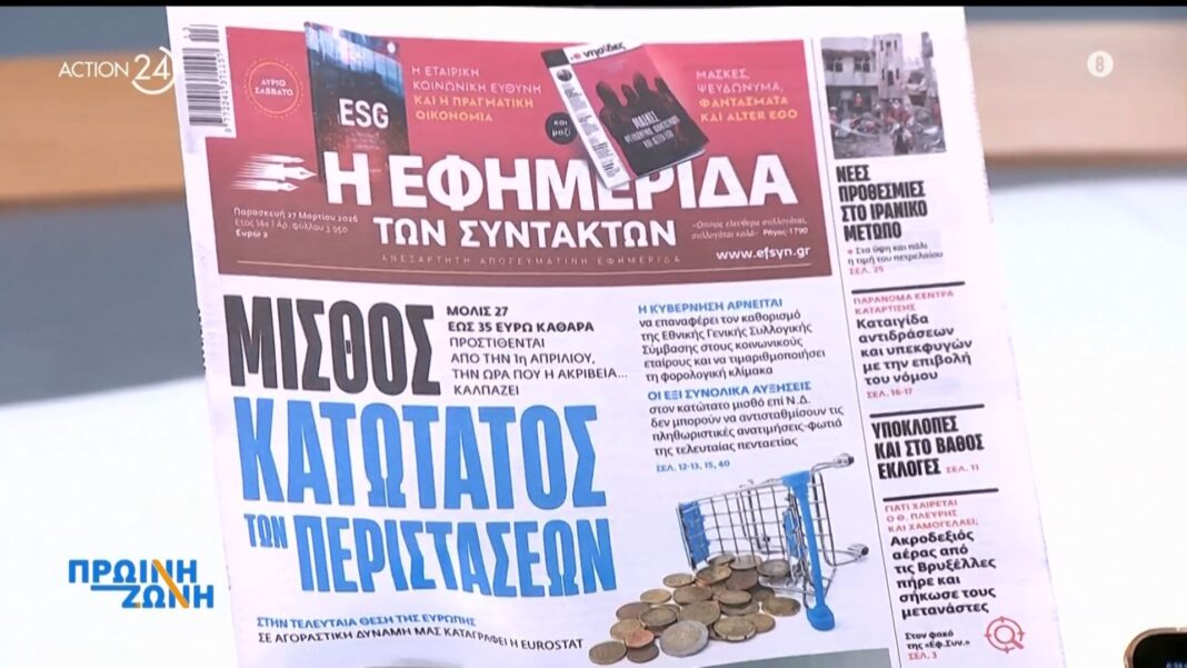 Πρωτοσέλιδα εφημερίδων: Τι γράφουν σήμερα Παρασκευή 27 Μαρτίου 2026