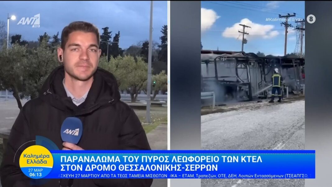 Παρανάλωμα του πυρός λεωφορείο των ΚΤΕΛ στο δρόμο Θεσσαλονίκης-Σερρών – Καλημέρα Ελλάδα – 27/03/2026