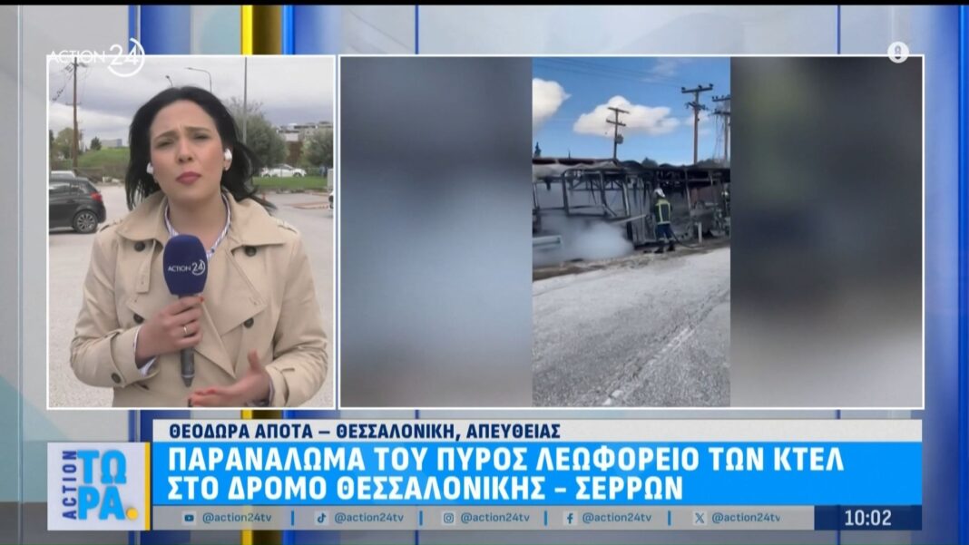 Παρανάλωμα του πυρός λεωφορείο των ΚΤΕΛ στο δρομολόγιο Θεσσαλονίκη – Σέρρες