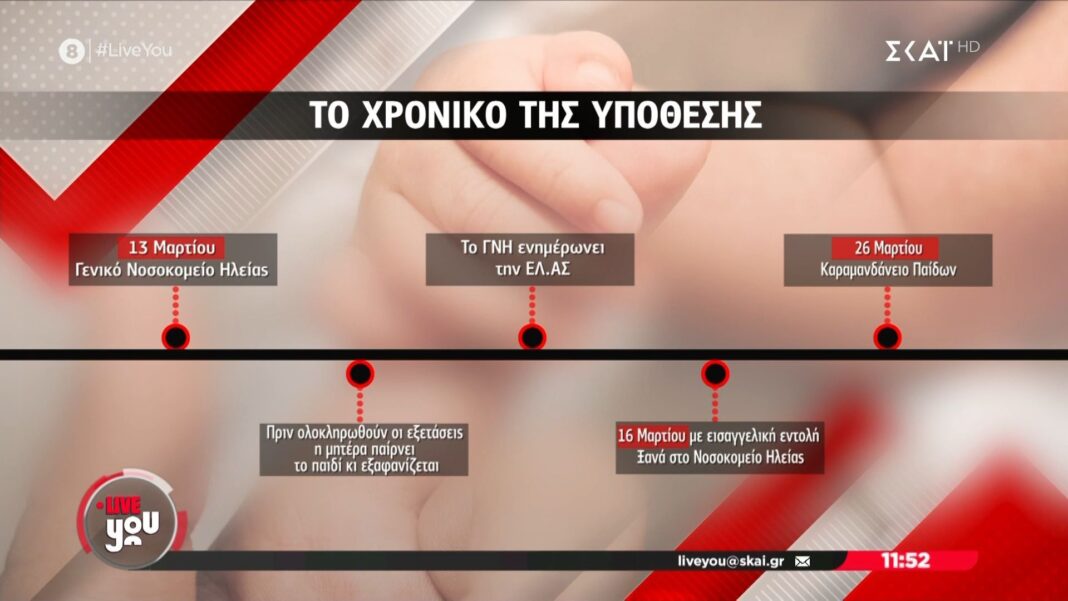 Οι αρχές ερευνούν την αποχώρηση της μητέρας από το νοσοκομείο Πύργου χωρίς συνέχιση της θεραπείας για το 10 μηνών βρέφος της, το οποίο μεταφέρθηκε στην Πάτρα.