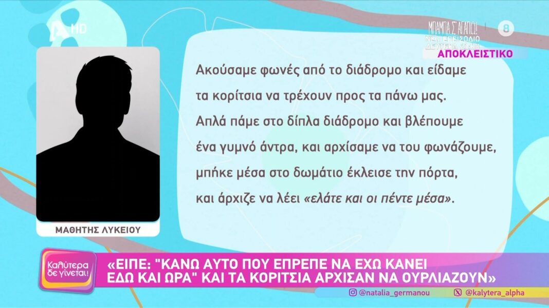 Σοκ προκάλεσε η είσοδος γυμνού άνδρα σε καμπίνα πλοίου όπου βρίσκονταν μαθητές. Σύμφωνα με μαρτυρίες, ο άνδρας φέρεται να δήλωσε ότι «κάνει αυτό που έπρεπε να κάνει εδώ και ώρα», δημιουργώντας ανησυχία και αναστάτωση στους παρευρισκόμενους.