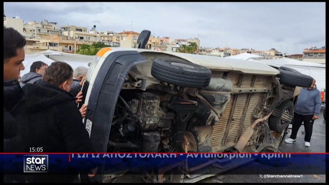 Κρήτη: Ο αέρας αναποδογύρισε φορτηγό στη λαϊκή αγορά του Ηρακλείου – Ιδιοκτήτης πάγκου γλίτωσε τελευταία στιγμή