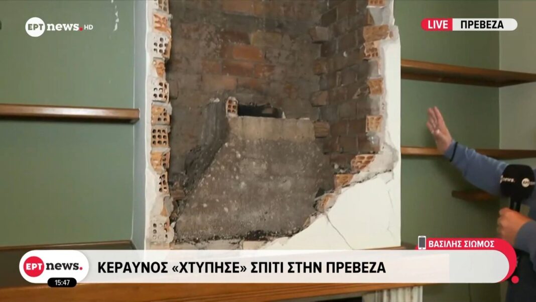 Κεραυνός έπληξε πρόσφατα μια κατοικία στην Πρέβεζα, προκαλώντας σοβαρές ζημιές. Ευτυχώς, οι ένοικοι του σπιτιού ήταν εκτός κατά τη διάρκεια του συμβάντος και δεν υπήρξαν τραυματισμοί.