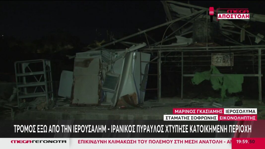 Τρόμος επικράτησε σήμερα έξω από την Ιερουσαλήμ, καθώς ένας ιρανικός πύραυλος έπληξε κατοικημένη περιοχή, προκαλώντας σοβαρές ζημιές και ανησυχία στους κατοίκους. Σύμφωνα με τις πρώτες πληροφορίες, υπάρχουν αναφορές για τραυματισμούς, ενώ οι αρχές έχουν κινητοποιηθεί άμεσα για να καταγράψουν τις συνέπειες του πλήγματος.
