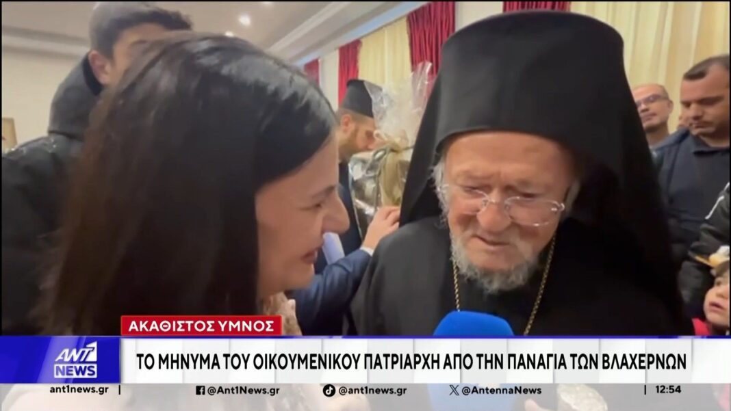 Μήνυμα Ειρήνης εξέπεμψε ο Οικουμενικός Πατριάρχης Βαρθολομαίος από την Παναγία των Βλαχερνών, ένα ιστορικό μνημείο όπου εψάλη για πρώτη φορά ο Ακάθιστος Ύμνος πριν από 1.400 χρόνια. Ο Πατριάρχης, απευθυνόμενος στους πιστούς, τόνισε τη σημασία της ενότητας και της ειρηνικής συνύπαρξης μεταξύ των λαών.