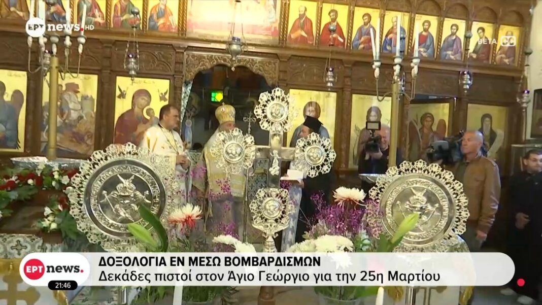 Δεκάδες πιστοί συγκεντρώθηκαν στην εκκλησία του Αγίου Γεωργίου στο Τελ Αβίβ, συμμετέχοντας σε δοξολογία για την επέτειο της 25ης Μαρτίου, παρά τους συνεχείς βομβαρδισμούς που πλήττουν την περιοχή. Η ατμόσφαιρα ήταν γεμάτη ένταση και ανησυχία, καθώς οι πιστοί προσεύχονταν για ειρήνη και ασφάλεια.