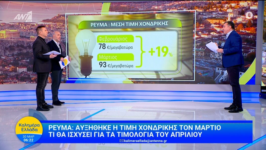 Ρεύμα: Αυξήθηκε η τιμή χονδρικής τον Μάρτιο – Καλημέρα Ελλάδα – 30/03/2026