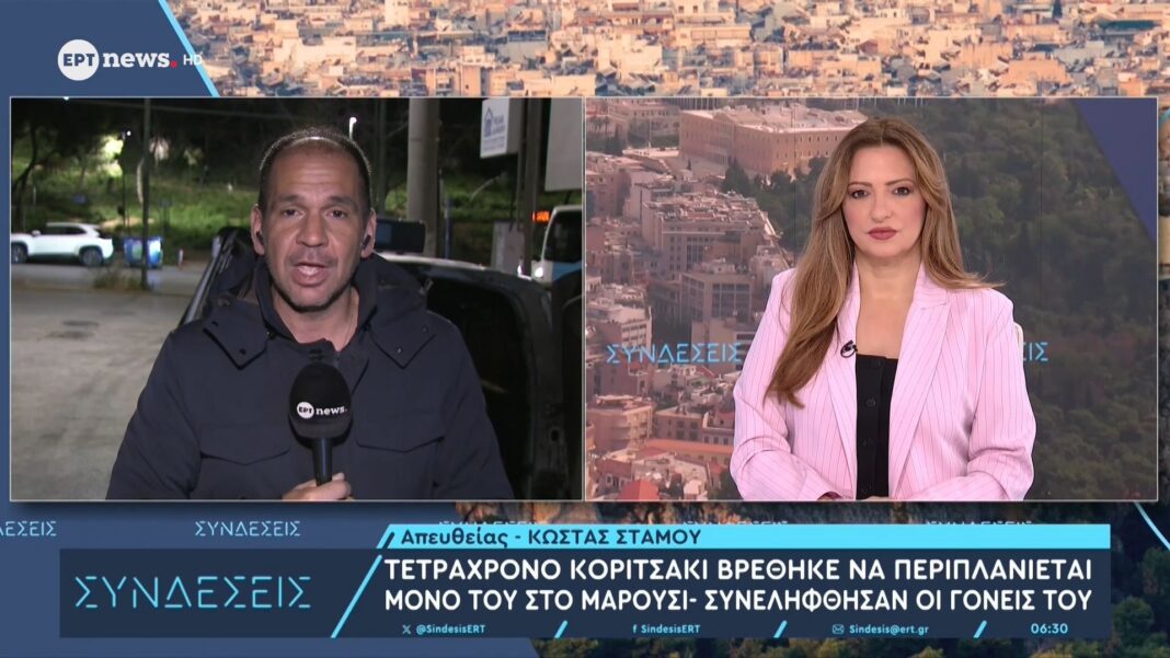 Σοβαρό περιστατικό σημειώθηκε στο Μαρούσι, όταν ένα 4χρονο κοριτσάκι βρέθηκε να περιπλανιέται μόνο του στους δρόμους. Ένας οδηγός ταξί ειδοποίησε την αστυνομία, η οποία εντόπισε τους γονείς του και προχώρησε στη σύλληψή τους, καθώς το παιδί είχε φύγει ασυνόδευτο από το σπίτι.