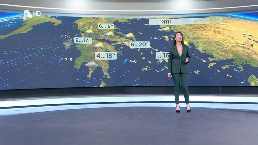Ήπιες θερμοκρασίες 10-18°C την Τρίτη, με τοπικές βροχές στα βόρεια και δυτικά. Ηλιόλουστη η νότια Ελλάδα, μέτριοι άνεμοι σε όλη τη χώρα. Προσοχή στους δρόμους.