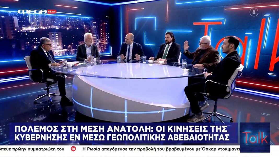 Η πολιτική αντιπαράθεση που εκτυλίσσεται στο “Mega News Talk” επικεντρώνεται στις πρόσφατες εξελίξεις στη Μέση Ανατολή και τις επιπτώσεις τους στην Ελλάδα. Οι Δ. Μαρκόπουλος, Π. Παππάς και Θ. Γεωργόπουλος αναλύουν τις θέσεις τους για τις προκλήσεις που αντιμετωπίζει η χώρα, καθώς και τις προοπτικές που ανοίγονται με τις πρόωρες εκλογές.