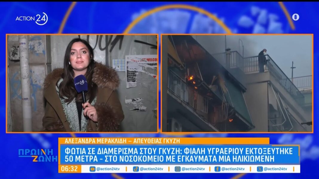 Φωτιά ξέσπασε σε διαμέρισμα στην περιοχή του Γκύζη, προκαλώντας σοβαρές ζημιές και πανικό στους κατοίκους. Σύμφωνα με τις πρώτες πληροφορίες, η φωτιά προκλήθηκε από την έκρηξη φιάλης υγραερίου, η οποία εκτοξεύτηκε σε απόσταση 50 μέτρων.