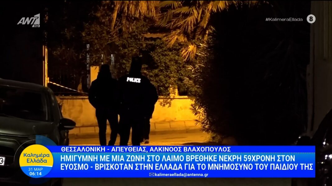 Σοκ έχει προκληθεί στην τοπική κοινωνία του Ευόσμου μετά την ανακάλυψη της σορού μιας 59χρονης γυναίκας, η οποία βρέθηκε νεκρή σε ημίγυμνη κατάσταση. Σύμφωνα με πληροφορίες, η γυναίκα είχε ταξιδέψει στην Ελλάδα για το μνημόσυνο του παιδιού της, ωστόσο οι συνθήκες του θανάτου της παραμένουν αδιευκρίνιστες.
