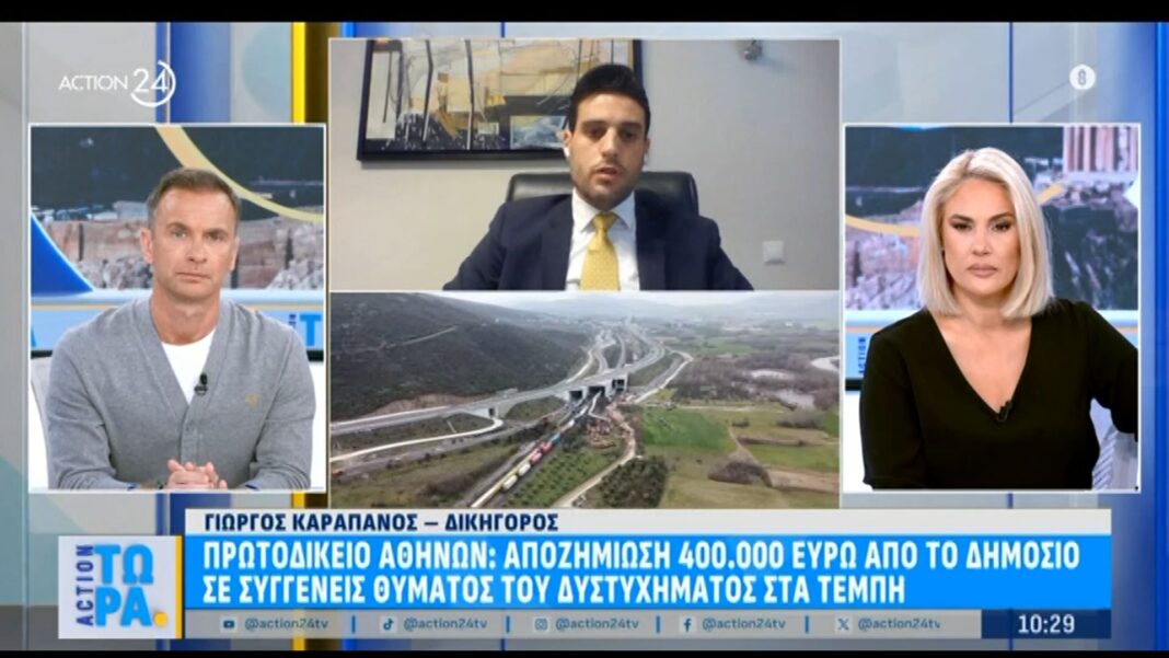 Στο Πρωτοδικείο Αθηνών, αποφασίστηκε η αποζημίωση των 400.000 ευρώ σε συγγενή θύματος της τραγωδίας στα Τέμπη. Ο δικηγόρος Γ. Καραπάνος τόνισε την ευθύνη του κράτους για την τραγωδία, επισημαίνοντας ότι είναι αδιανόητο δύο τρένα να κινούνται στην ίδια λωρίδα χωρίς τη δέουσα προσοχή και μέτρα ασφαλείας.