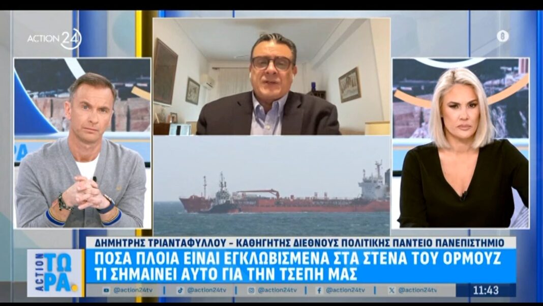 Ο καθηγητής Θανάσης Τριανταφύλλου αναλύει την κατάσταση στα στενά του Ορμούζ, όπου πολλά πλοία έχουν εγκλωβιστεί λόγω των γεωπολιτικών εντάσεων. Η συγκεκριμένη κρίση επηρεάζει άμεσα τις διεθνείς εμπορικές ροές και τις τιμές του πετρελαίου, προκαλώντας ανησυχία στις αγορές.