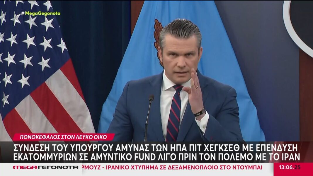 Ο Υπουργός Άμυνας των ΗΠΑ, Πιτ Χέγκσεθ, βρίσκεται στο επίκεντρο ενός σκανδάλου σχετικά με μια επένδυση εκατομμυρίων σε αμυντικό fund, την οποία πραγματοποίησε λίγες ημέρες πριν από την εκδήλωση της πιθανής σύρραξης με το Ιράν. Η κίνηση αυτή έχει προκαλέσει ανησυχίες στον Λευκό Οίκο, καθώς εγείρει ερωτήματα για τη διαφάνεια και τις προθέσεις του Υπουργού.