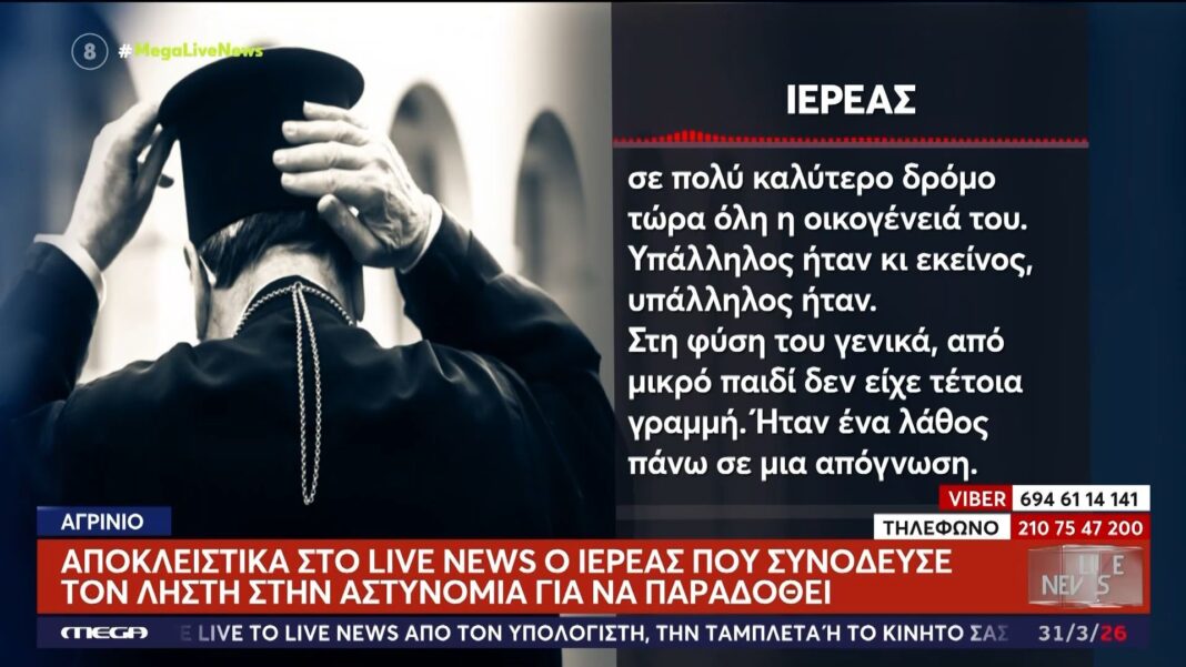 Αποκλειστικό: Στο Live News ο ιερέας που συνόδευσε τον ληστή στην αστυνομία για να παραδοθεί