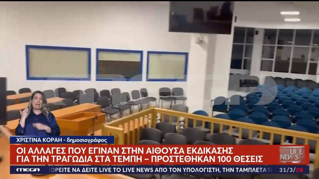Η αίθουσα αλλαγμένη για τη δίκη της τραγωδίας στα Τέμπη με αυστηρότερους κανόνες ασφαλείας και κρίσιμες δοκιμές αντοχής πριν το Πάσχα.